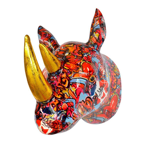 Κεραμικό διακοσμητικό τοίχου Ρινόκερος “Lola” σε μέγεθος Large με διαστάσεις: L27xD16xH27 CM.