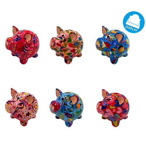 Κεραμικός κουμπαράς Γουρουνάκι “Rosie” μέγεθος Small με διαστάσεις: L10,2xD9,5xH10 CM. Πώληση σε συσκευασία των 6 τεμαχίων.