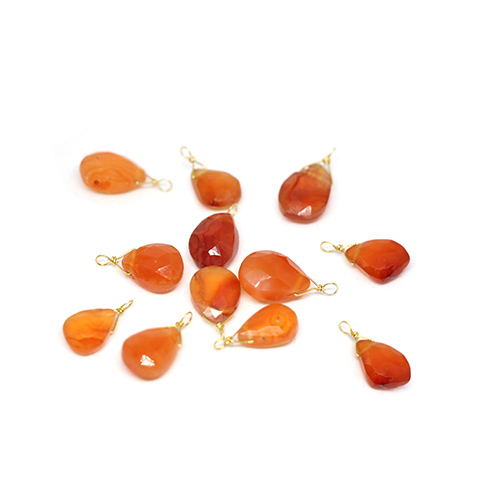 Πολύτιμη πετρούλα Καρνεόλη σε σχήμα δάκρυ με ύψος πέτρας ~10mm κρεμασμένη σε ασημένιο σύρμα Ag925°.