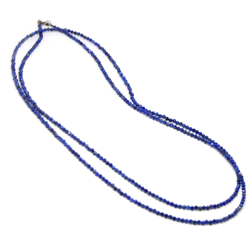 Κολιέ με ψιλές ημιπολύτιμες χάντρες από Λάπη σε διάφορα μήκη 40/42/45 και 90 εκατοστά με ασημένιο Ag925° κούμπωμα. Πάχος ημιπολύτιμης: ~2.5mm.